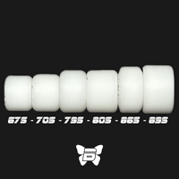 - 70s are a smaller radial/conical shape with dimensions 7.0mm x 5.1mm also feature a slight rounding to the wheels edges. Have a slight over hang past the lock nut of about 0.1mm.
